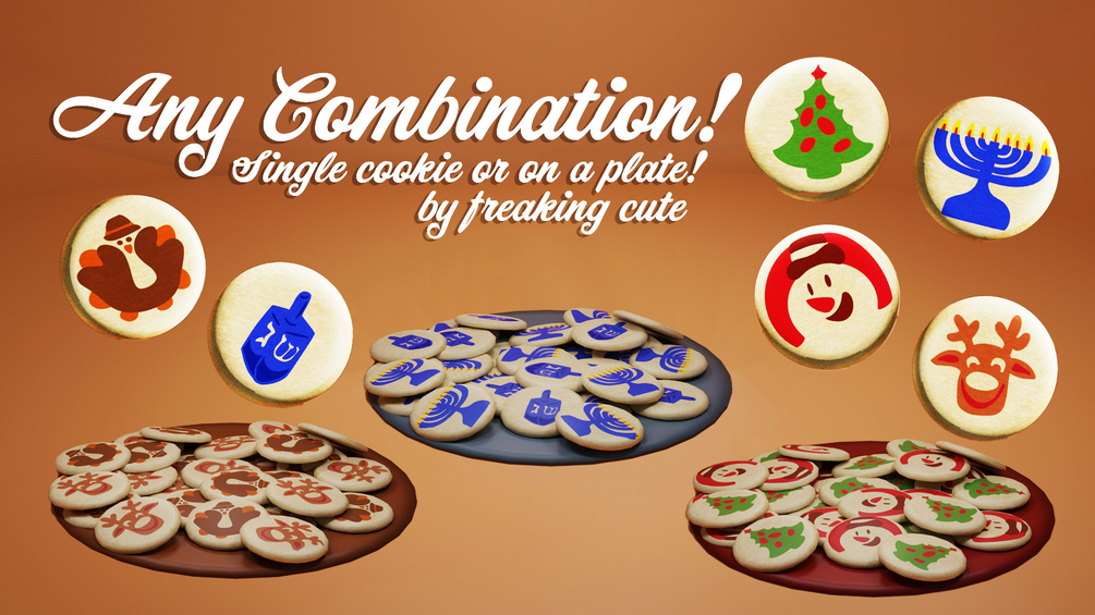 All of these cookies are hand textured by me! They are based on the Pillsbury cookies designs, except for the menorah and dreidel. (There are no Pillsbury Chanukah designs so I had to make my own which I think turned out cute <3) I really hope you all enjoy this product! I had so much fun making them and I would love to share the love with you all!